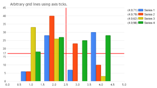 How additional grid lines on a chart area at any position using axis ticks.