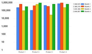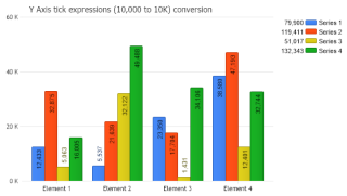 Demonstrates using expressions in y axis tick labels to change values like 10,000 to 10 K.