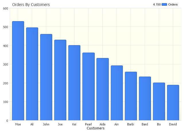 Chart.Series.SqlStatement= "SELECT Name,Sum(1) FROM Orders GROUP BY Name ORDER BY Sum(1) DESC"