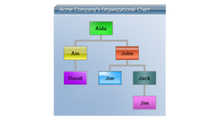 Demonstrates a manually populated organization chart where the last level is listed vertically due to image size constraints.