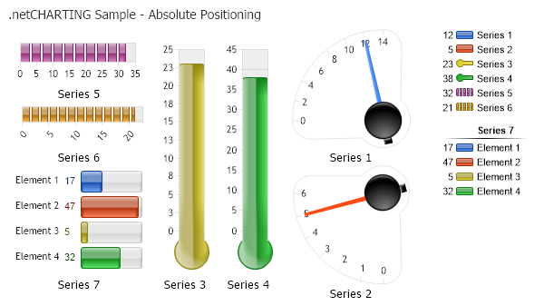 ' Demonstrates using absolute positioning of several gauges on a single chart.
