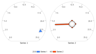 How multiple needles behave on a gauge chart.