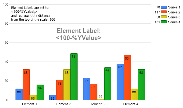 Chart.ChartArea.Label.Text = "Element Labels are set to:\n\\<100-\\%YValue\\> \nand represent the distance \nfrom the top of the scale: 100";