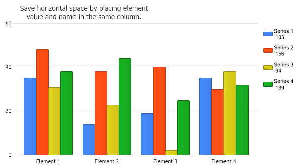 Chart.Title = "Save horizontal space by placing element \nvalue and name in the same column.";