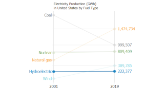 This sample deomonstrates a ranked slope chart with specific categories for each axis.