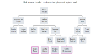 Demonstrates an organizational chart with interactive node level highlighting and selection.