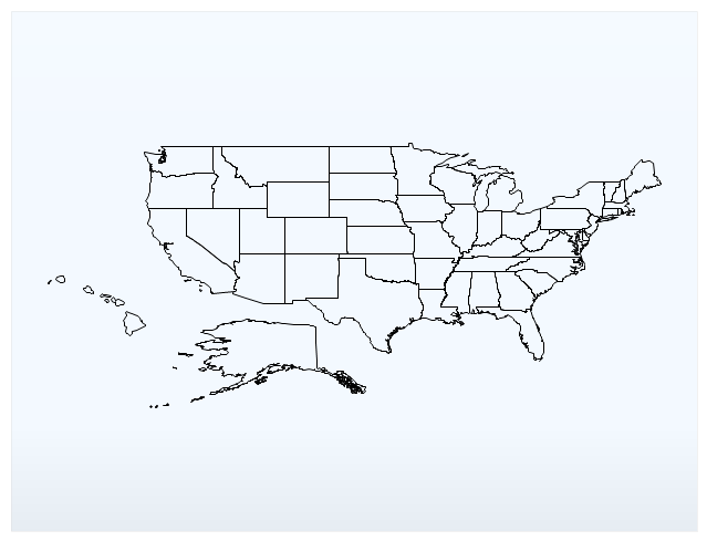 <%@ Page Language="C#" Description="dotnetCHARTING Component" debug = "true" %><%@ Register TagPrefix="dotnet" Namespace="dotnetCHARTING" Assembly="dotnetCHARTING"%><%@ Import Namespace="System.Drawing" %><%@ Import Namespace="System.Data" %><%@ Import Namespace="System.Data.OleDb" %><%@ Import Namespace="dotnetCHARTING.Mapping" %><html xmlns="http://www.w3.org/1999/xhtml"> <head> <title>.netCHARTING Sample</title> <script runat="server">void Page_Load(Object sender,EventArgs e){ //Simple map in 3 lines of code Chart.Type = ChartType.Map; Chart.TempDirectory = "temp"; Chart.ChartArea.Background.Color = Color.FromArgb(255,243,249,255); Chart.Mapping.MapLayerCollection.Add("../../images/MapFiles/primusa.shp");}</script> </head> <body> <div style="text-align:center"> <dotnet:Chart id="Chart" runat="server" > </dotnet:Chart> </div> </body></html>