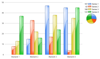 Demonstrates stacked pies using DefaultElement.BubbleSize to control the pie sizes.