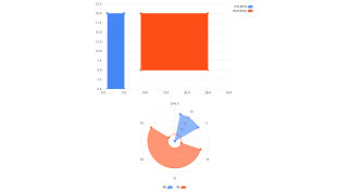 Demonstrates a pyramid chart types created using 2 chart areas.