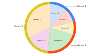Demonstrates using a stacked pie ring to indicate which pie elements belong to which series or group.