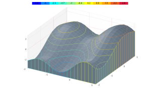 Demonstrates a 3D contour surface chart with a 2d contour layer.