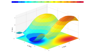 Demonstrates a 3D surface chart with DrawToFloor and different swatch.