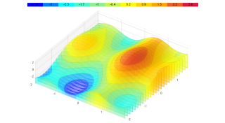 Demonstrates a 2D surface chart with contour lines.