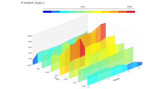 Demonstrates creating a surface chart from live time based data.